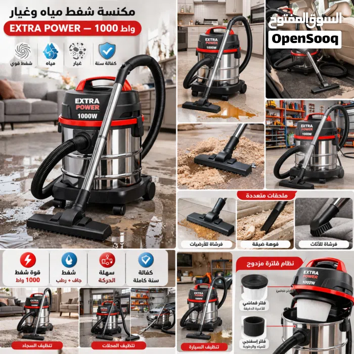 مكنسة شفط مياه وغبار Extra Power – 1000 واط فعلي