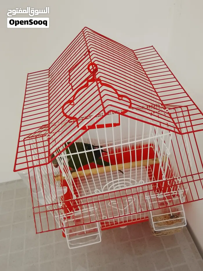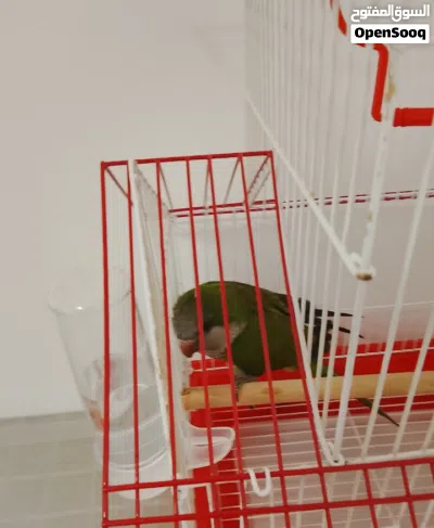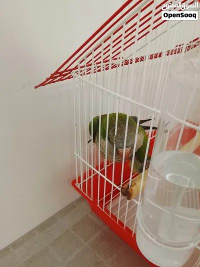 ببغاء كويكر(الراهب) مع قفص مع ماكليتين ومشربيه