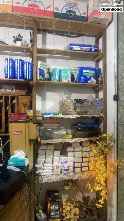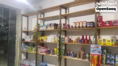 متوفر رفوف خشبية موجودة بسوبر ماركت للبيع لغرض تسكير المحل