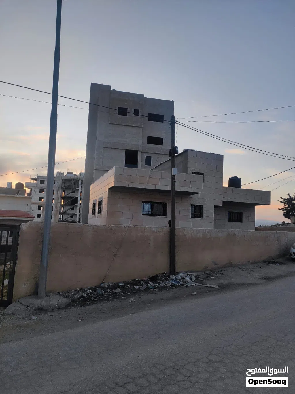 بناء على شارع رئيسي على زفتة