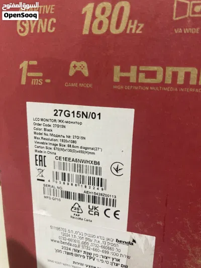 للبيع – شاشة ألعاب AOC 27G15N بحجم 27 إنش – 180Hz – 1ms – VA
