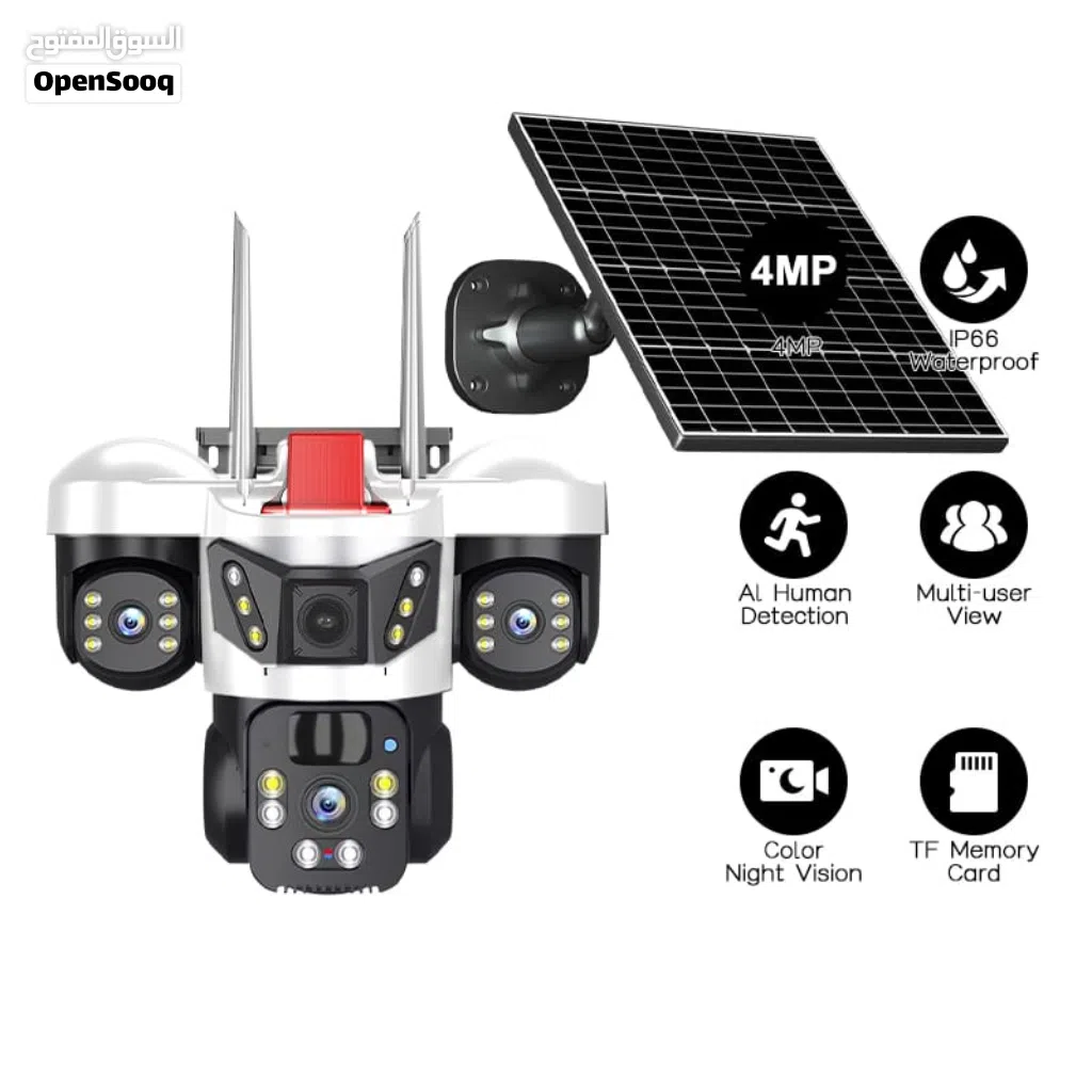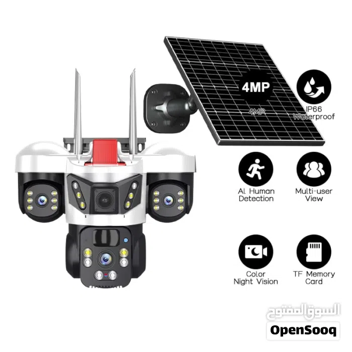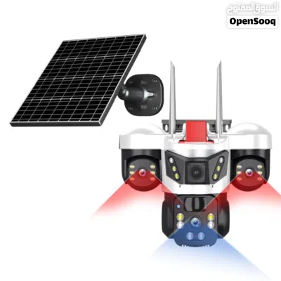 كاميرا طاقة شمسية ثلاثية العدسات مع كشاف قوي 3 عدسات حقيقية تغطية أوسع وأوضح مزودة بكشاف إضاءة .