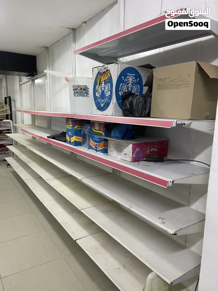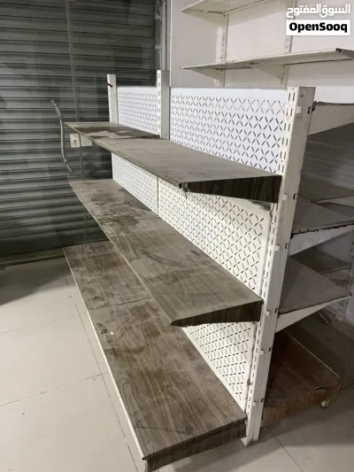 ارفف مستعمله للبيع مع سفينتين وسط عدد 11 عامود + 35 رف والسفينتين فيهم 24 رف بعدها راكبه كلهم في 1700 شيكل من الاخرر