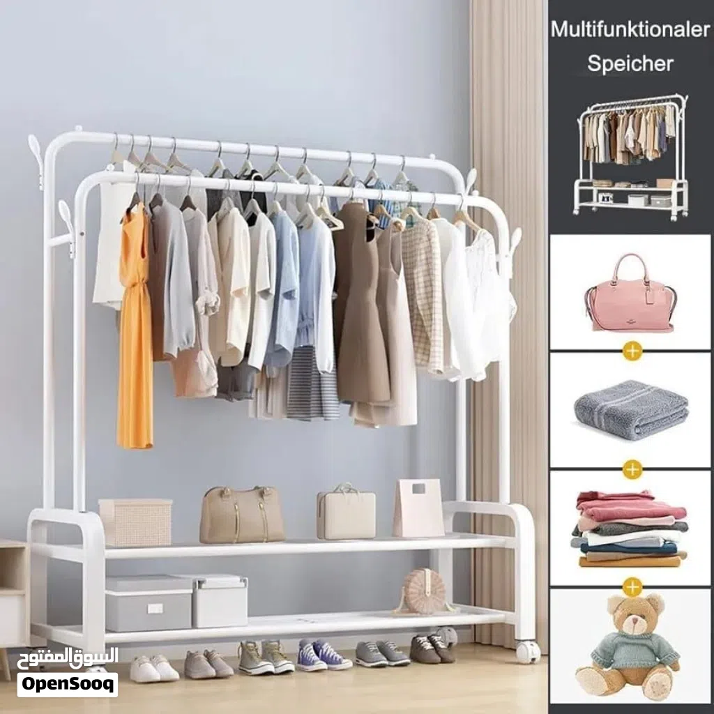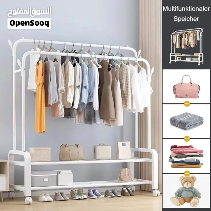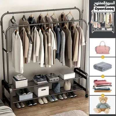 خلي غرفتك مرتبة وأنيقة مع ستاند الملابس المزدوج بتصميمه المتين والعصري بيمنحك مساحة مثالية لتعليق الملابس وتخزين الأحذية والصناديق وكل احتياجاتك في مكان واحد.