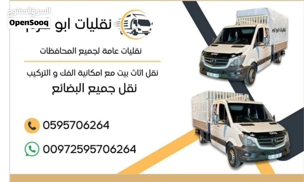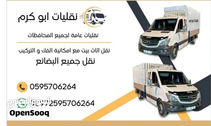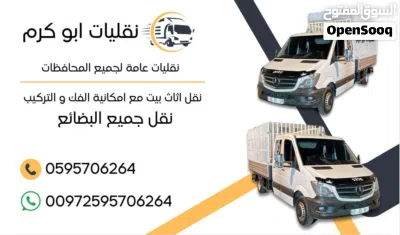 ابو كرم نقليلت عامة افضل الاسعار و احسن خدمة من جميع الوطن. من شمال ل جنوب ...الاسعار منافسة مراعاة الظروف العام في بلد خدمة 24ساعة...موجود شباب تزيل و تحميل الحمل ...و تركيب ... Click to Show Phone Number 9705957062XX