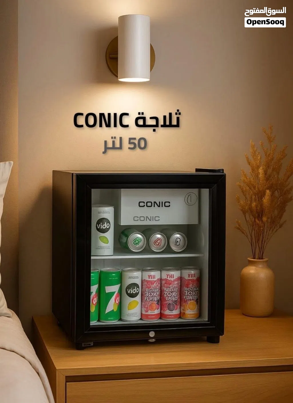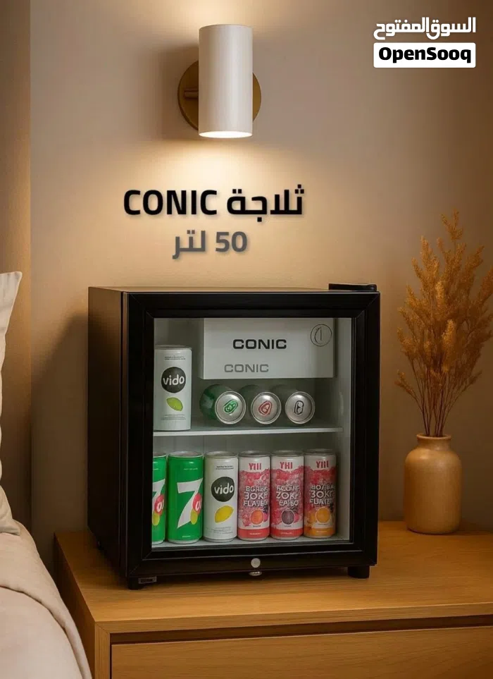 تخيل تكون غرقان بالتخت، وتحس بالعطش.. بدل ما تقوم برحلة استكشافية للمطبخ وتطير النومة، ثلاجة CONIC جنبك!