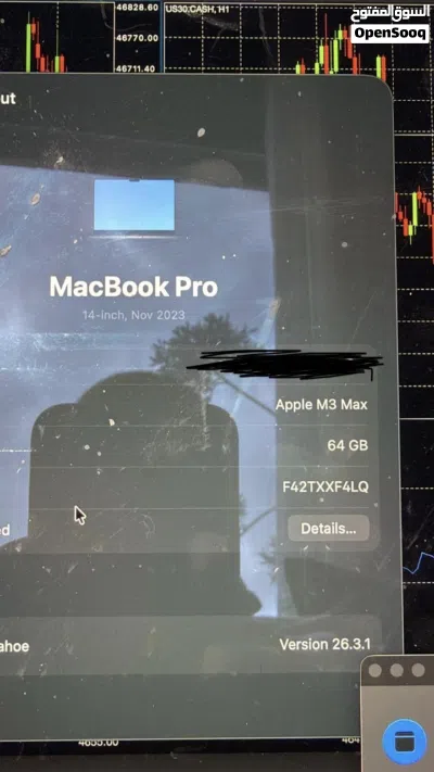 ماك بوك برو 14 انش، m3 max، استخدام بسيط منذ شرائه، رام معدلة، وان تيرا،
