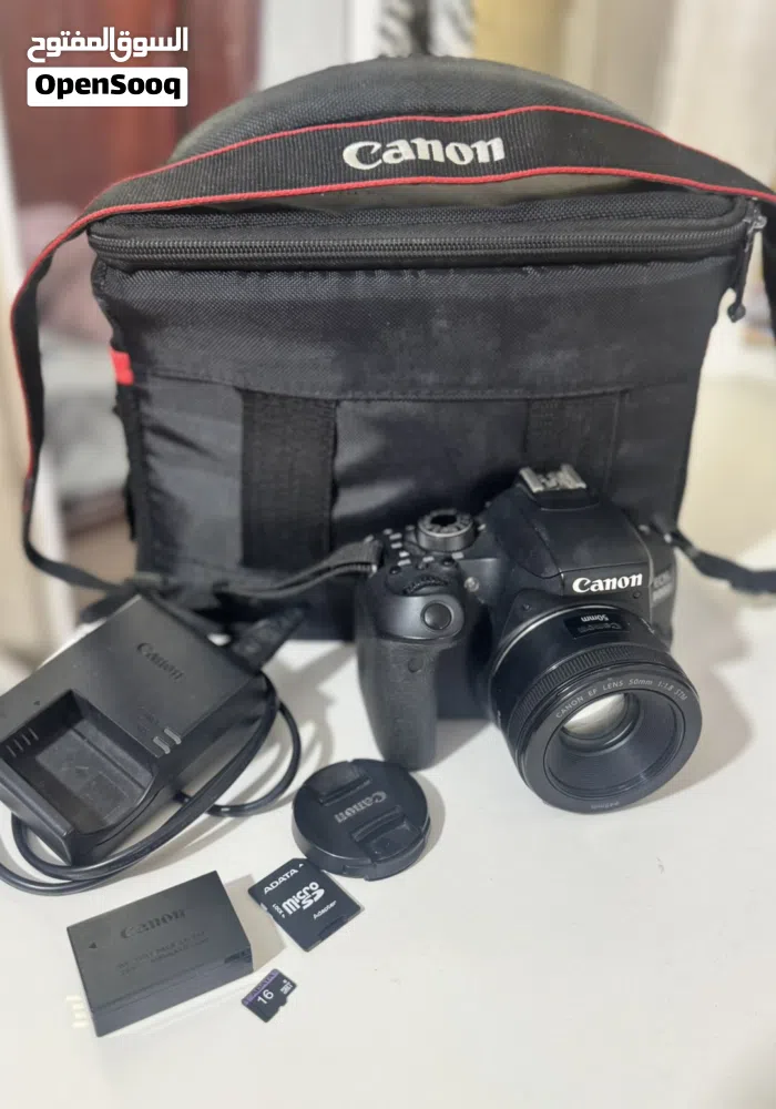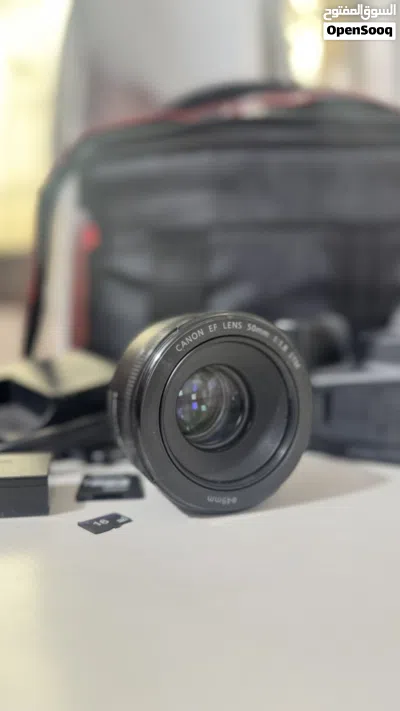 • العدسة (Lens): عدسة Canon EF 50mm f/1.8 STM - ملكة العزل والبورتريه، بتعطيك خلفية مغبشة (Blur) احترافية جداً.